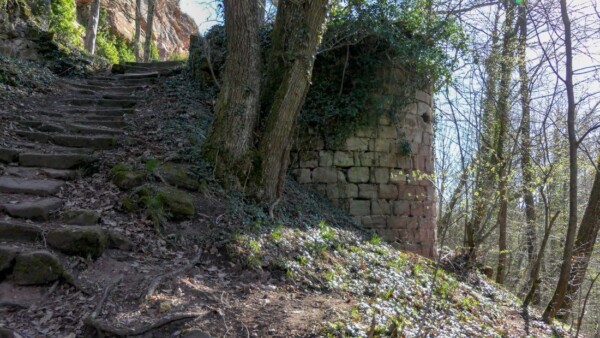 Auf Burg Drachenfels gab es rundum Schießöffnungen für den Einsatz von Pulverhandwaffen, z.B. auf/in