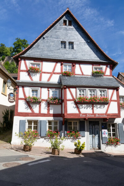 Das wie Waschbeton anmutende Gestein ist das im Königberggebiet häufig anzutreffende Konglomerat. Dieses grobkörnige Sedimentgestein besteht aus mindestens zur Hälfte aus gerundeten Kieskomponenten, das durch eine feinkörnige Matrix verkittet ist.