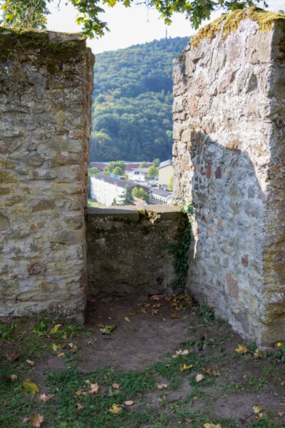 Die Schildmauer ist langgestreckt und im Verlauf gerade. Ihre Mauerstärke ist jedoch deutlich geringer, als wir das von anderen Schildmauern auf Pfälzer Burgen kennen. Das belegt, dass Neu-Wolfstein nicht als ein trutziger Wehrbau und Machtsymbol diente.